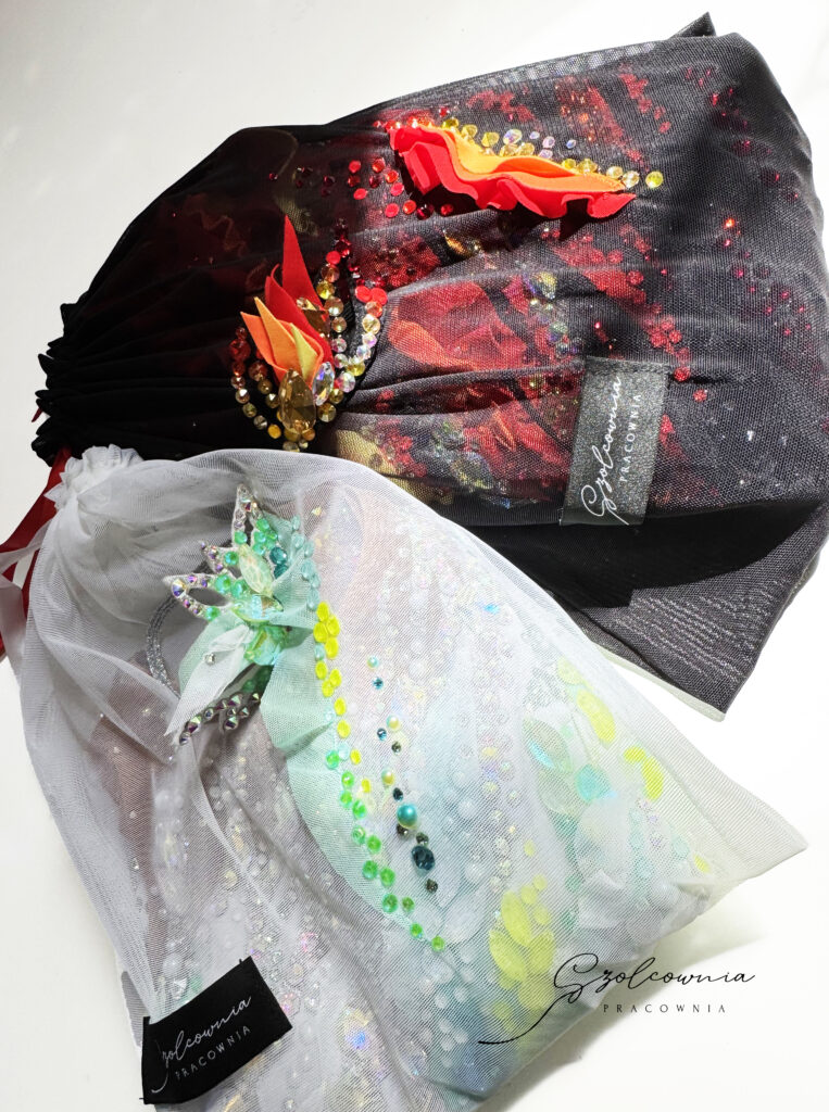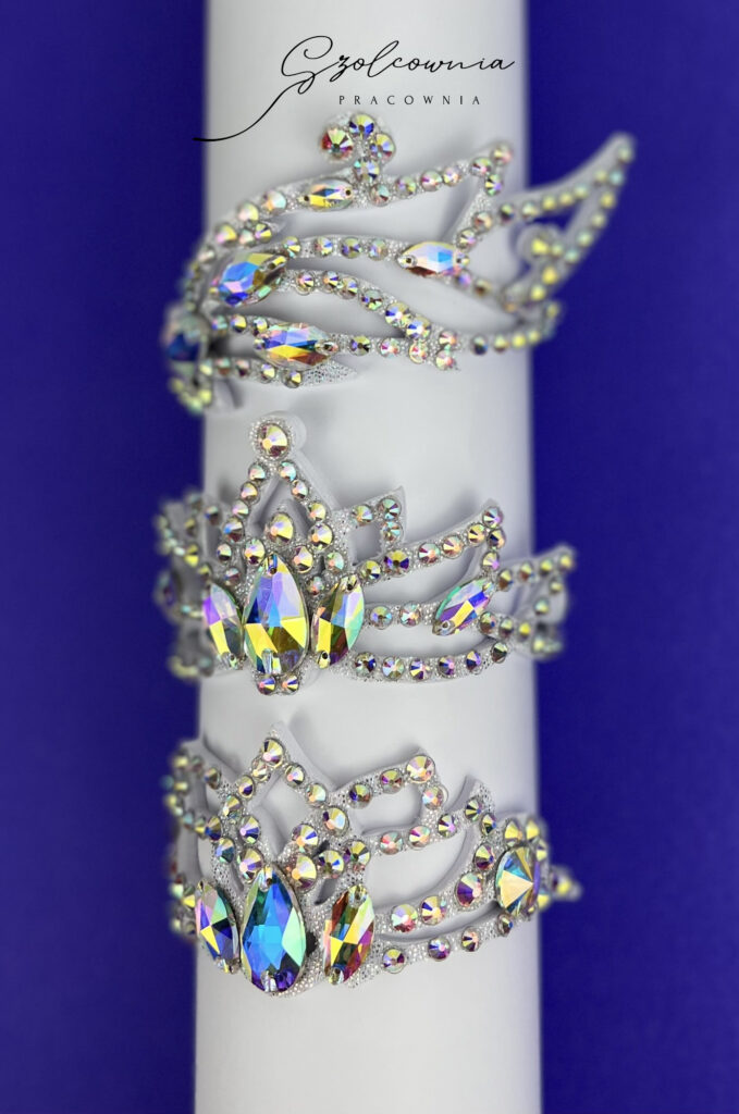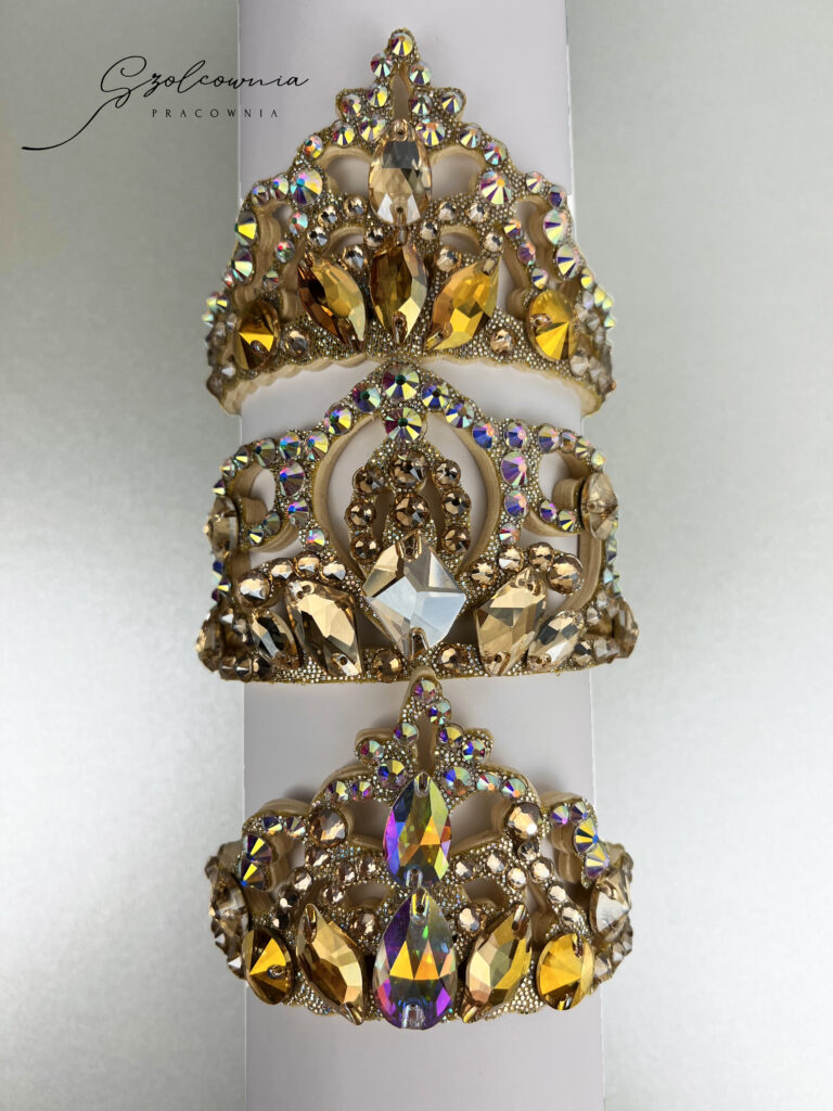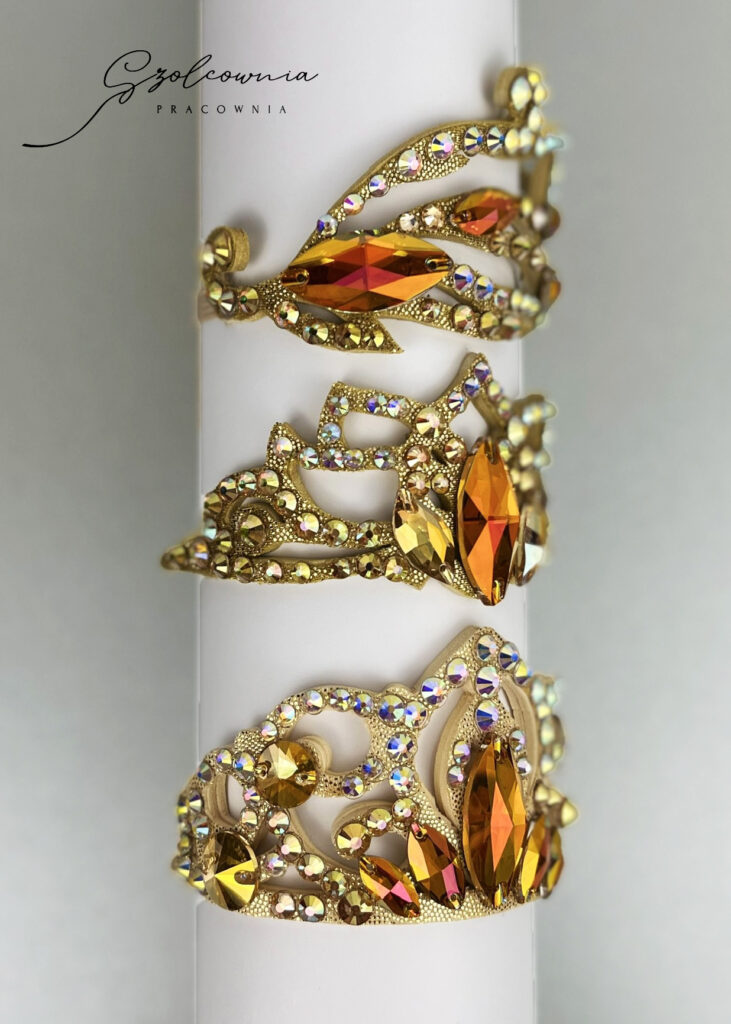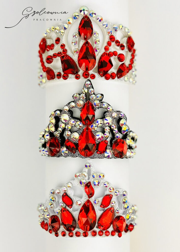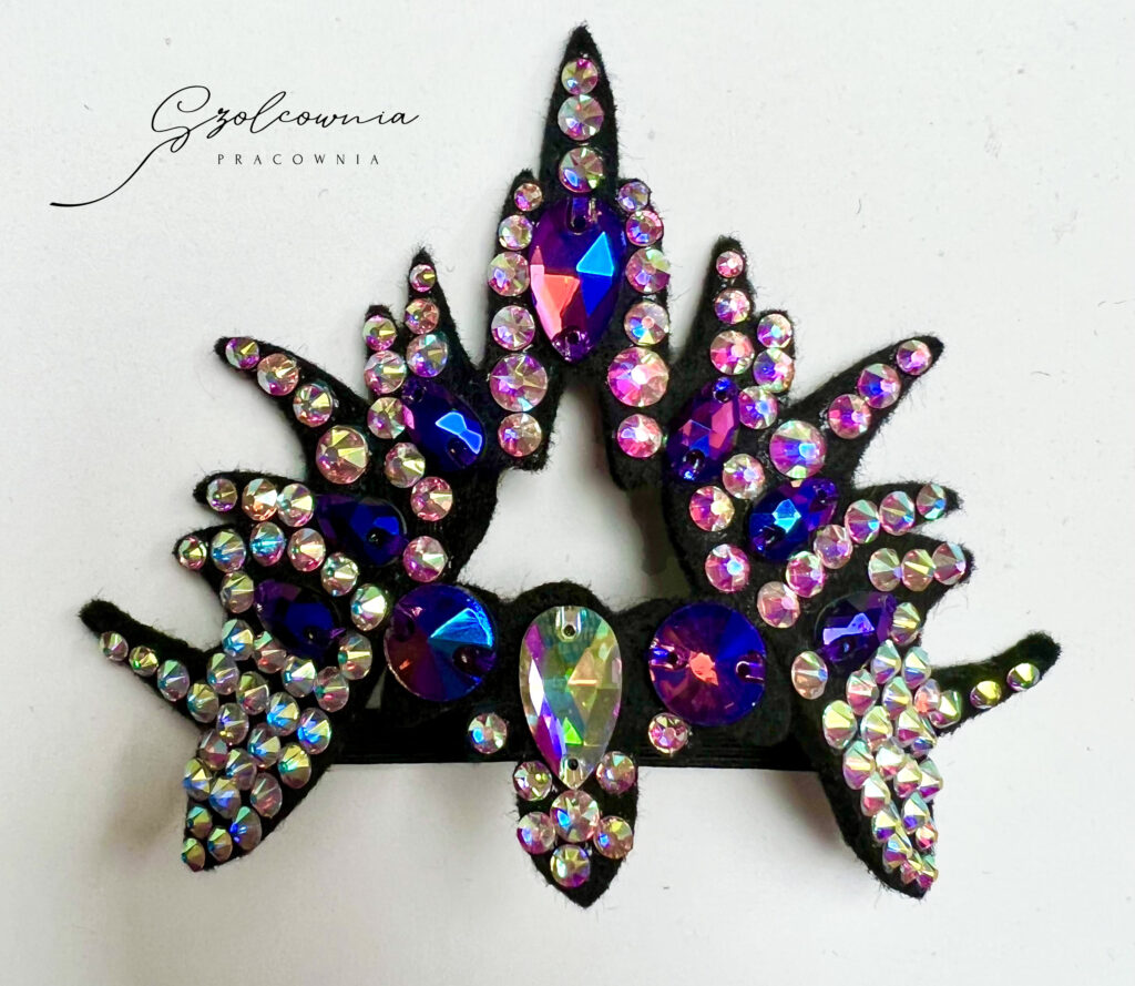Tworzę ozdoby na głowę – koronki, aplikacje i dekoracje do koków – które dopełniają stylizację i tworzą spójną całość z kostiumem.
